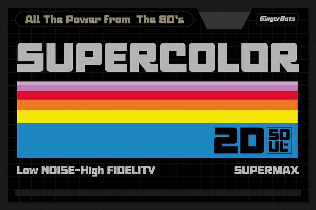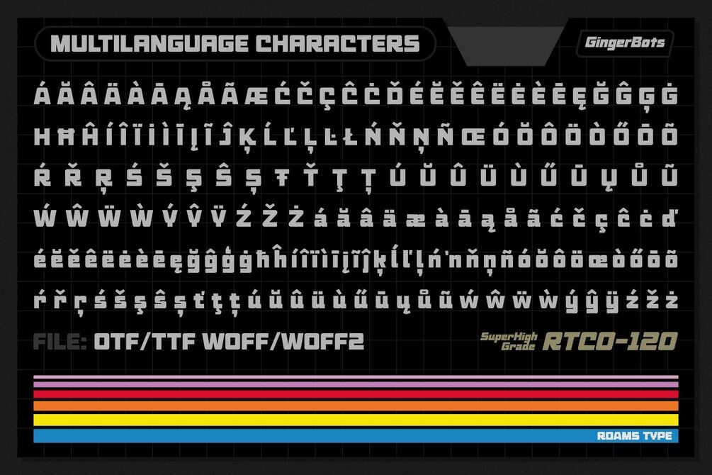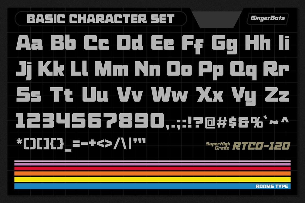Ginger Bots Inspired by VHS Title Typography in the 80's era, with a bold and dynamic style, this font will strengthen your logo design or logo typography.